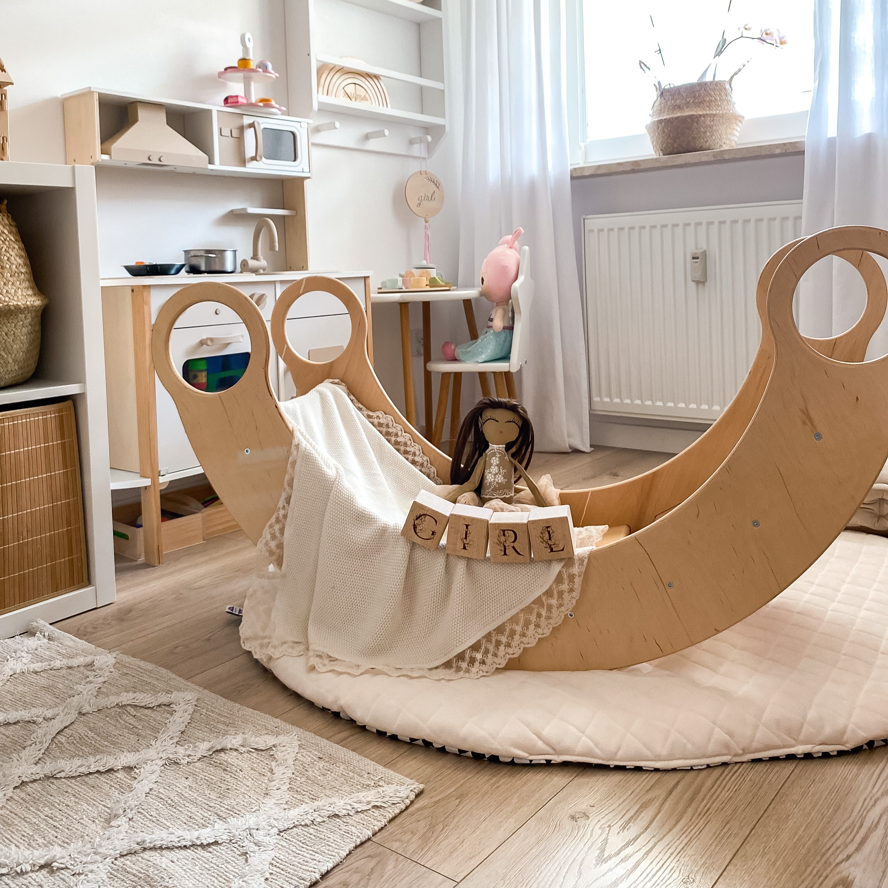 Bujak dla dziecka Montessori to też bardzo dobre miejsce do relaksu. Twój maluch może położyć się w nim na poduszeczce, przykryć kocem i zacząć się bujać. To kojarzy się dziecku z bujaniem w czasach niemowlęcych - zapewniając mu poczucie spokoju i bezpieczeństwa. To właśnie dlatego bujaki Montessori są polecane zarówno przez fizjoterapeutów, jak i psychologów dziecięcych.