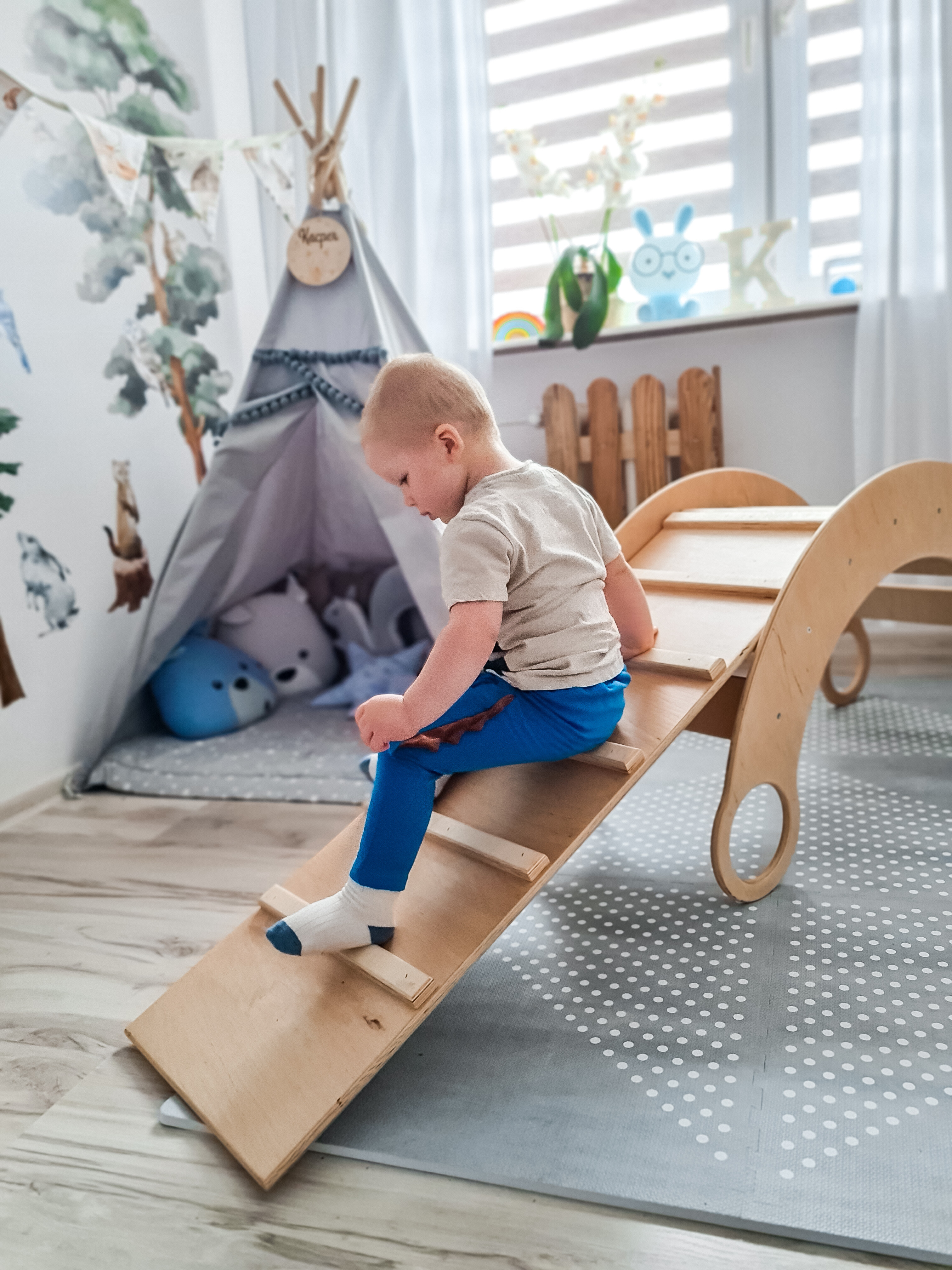 W zestawie z bujakiem znajduje się też rampa ze schodkami, która w każdym momencie może przeobrazić go w mały plac zabaw. Dziecko może wspinać się na bujak, lub stworzyć z niego zjeżdżalnię. To pomoże w rozwoju jego kreatywności i zapewni zabawę na wiele godzin. Do wyboru masz także dodatkowy blat do bujaka oraz krzesełko, które w każdym momencie może zamienić go w poręczny stoliczek.
