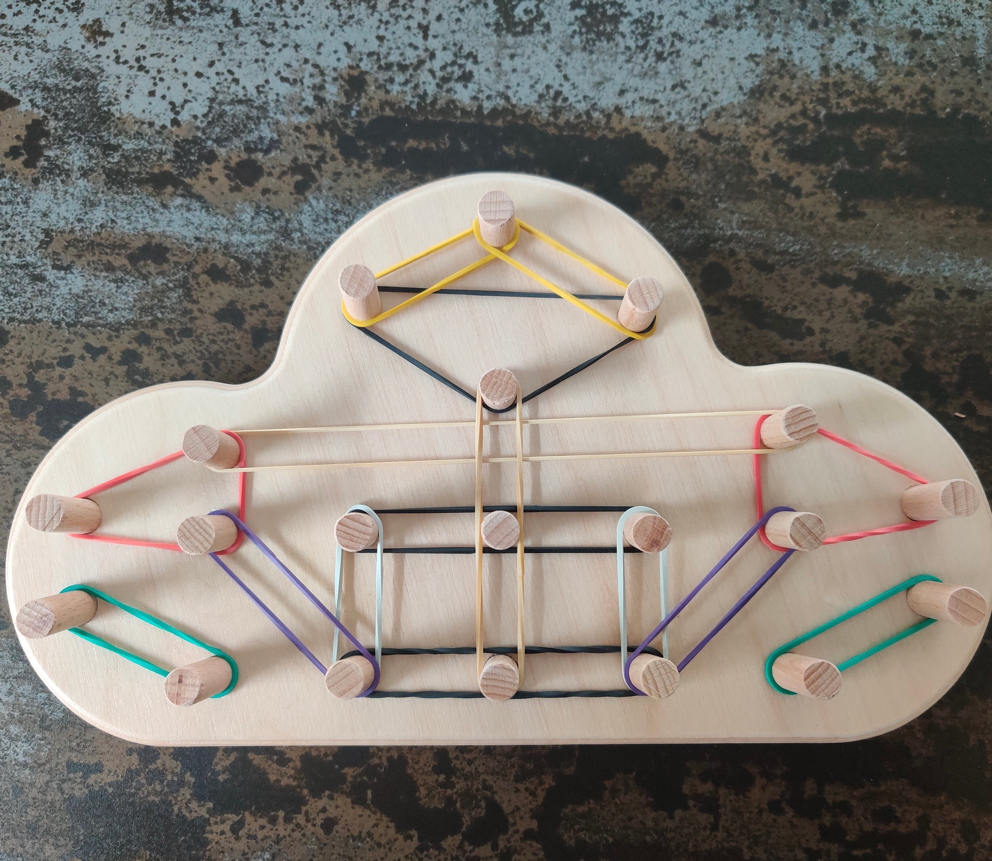 Drewniana układanka Geoplan to edukacyjna gra, które wspiera i rozwija kreatywność i wyobraźnie twojego dziecka. W tej grze dzieci mogą odtwarzać na geoplanie znane sobie kształty lub przedmioty rozciągając kolorowe gumki pomiędzy słupkami. Albo mogą pójść o krok dalej i samodzielnie wymyślać i tworzyć dowolne kształty i figury płaskie. Zabawka wspiera sprawność oraz koordynację wzrokowo - ruchową. Zapewnia ciekawe zajęcie, które jednocześnie rozwijają zdolności manualne, logiczne myślenie, koncentrację i zapamiętywanie.