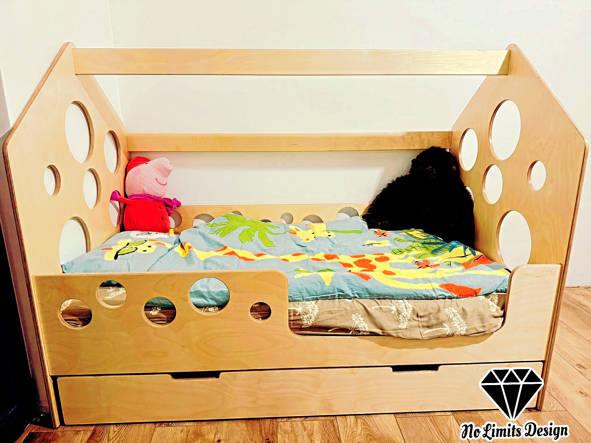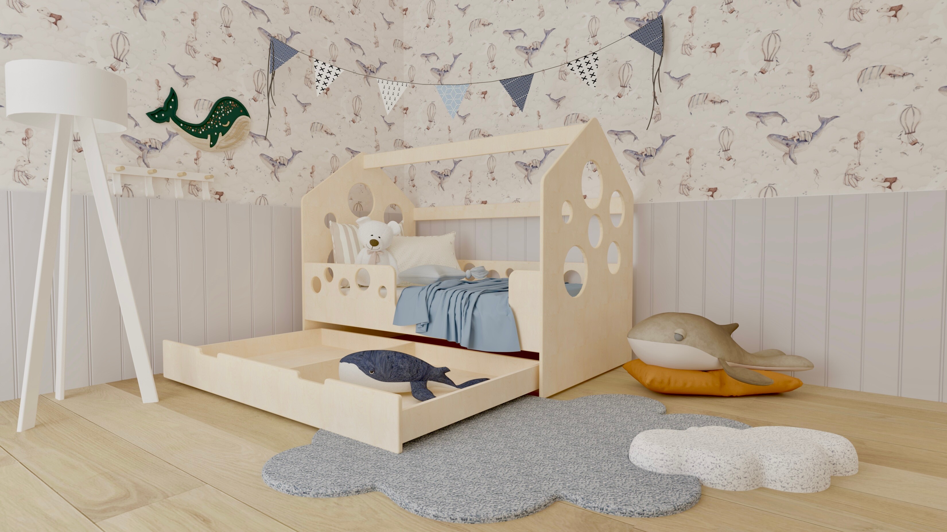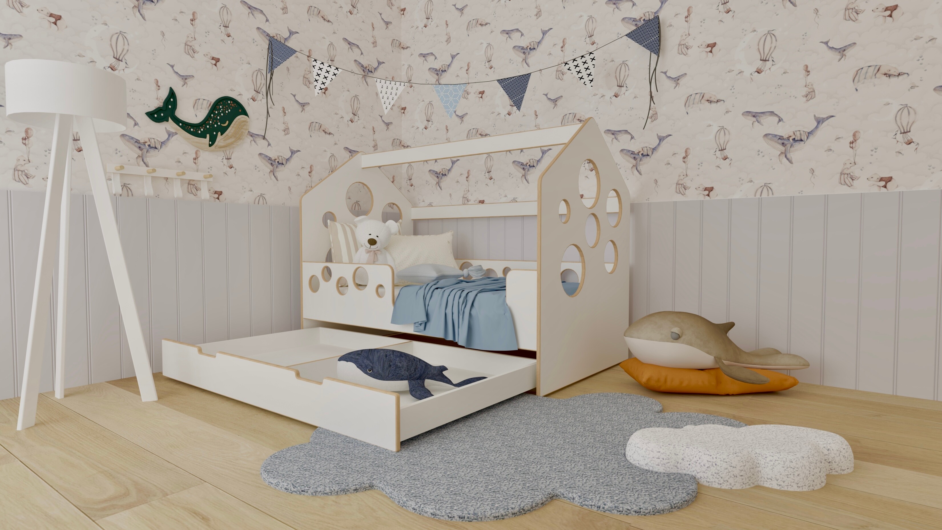 Nasze łóżko domek Little Bubble możesz kupić także w wersji z szufladami, a nawet wysuwanym miejscem do spania. Dzięki temu nie będziesz musiał martwić się, że w pokoju twojego dziecka nie starczy półek na rzeczy. Do wyboru mamy wiele różnych wymiarów, od 140 cm x 70 cm, do aż 180 cm x 90 cm, więc na pewno znajdziesz coś dla siebie.