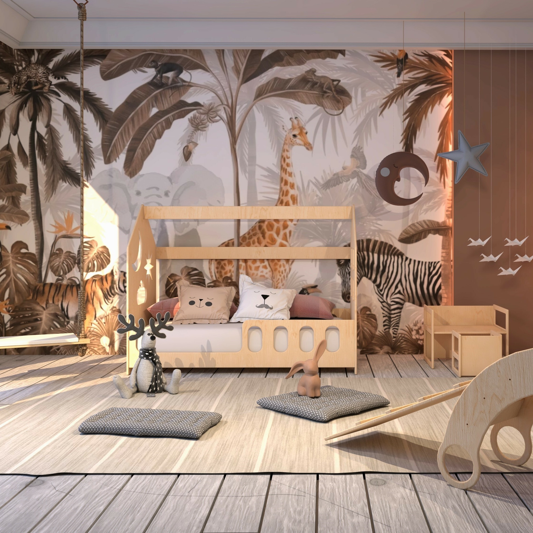 - Materiały: wykonane ze sklejki liściastej 15 mm malowanej natryskowo lakierem bezbarwnym (bezpiecznym dla dzieci) lub płyty MDF 18 mm w kolorze białym