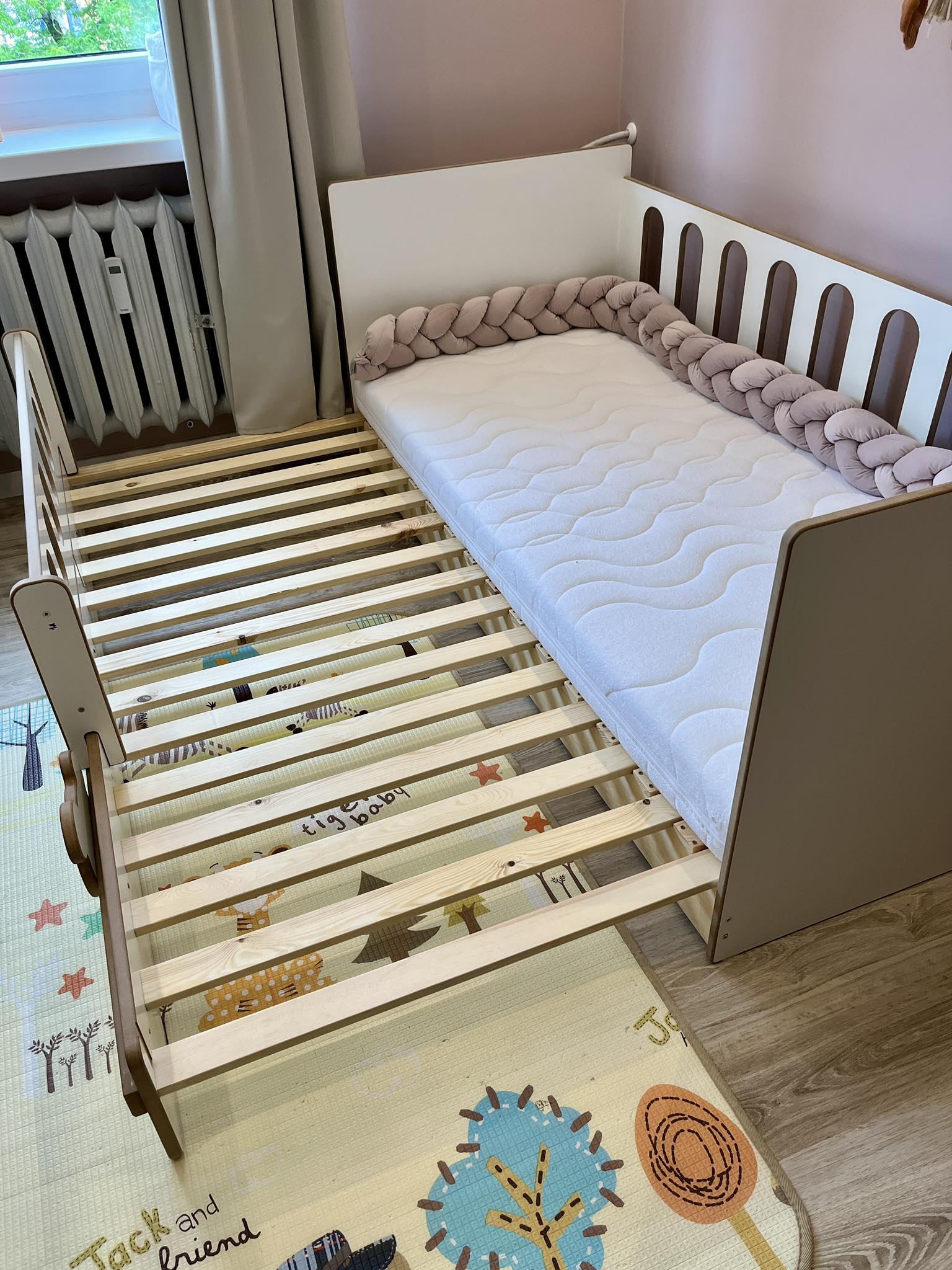 Solidna Konstrukcja: Łóżko zostało wykonane z wysokiej jakości materiałów, co gwarantuje jego trwałość i stabilność. Bezpieczeństwo Twojego dziecka jest dla nas priorytetem, dlatego wszystkie krawędzie są zaokrąglone, a użyte farby są nietoksyczne.