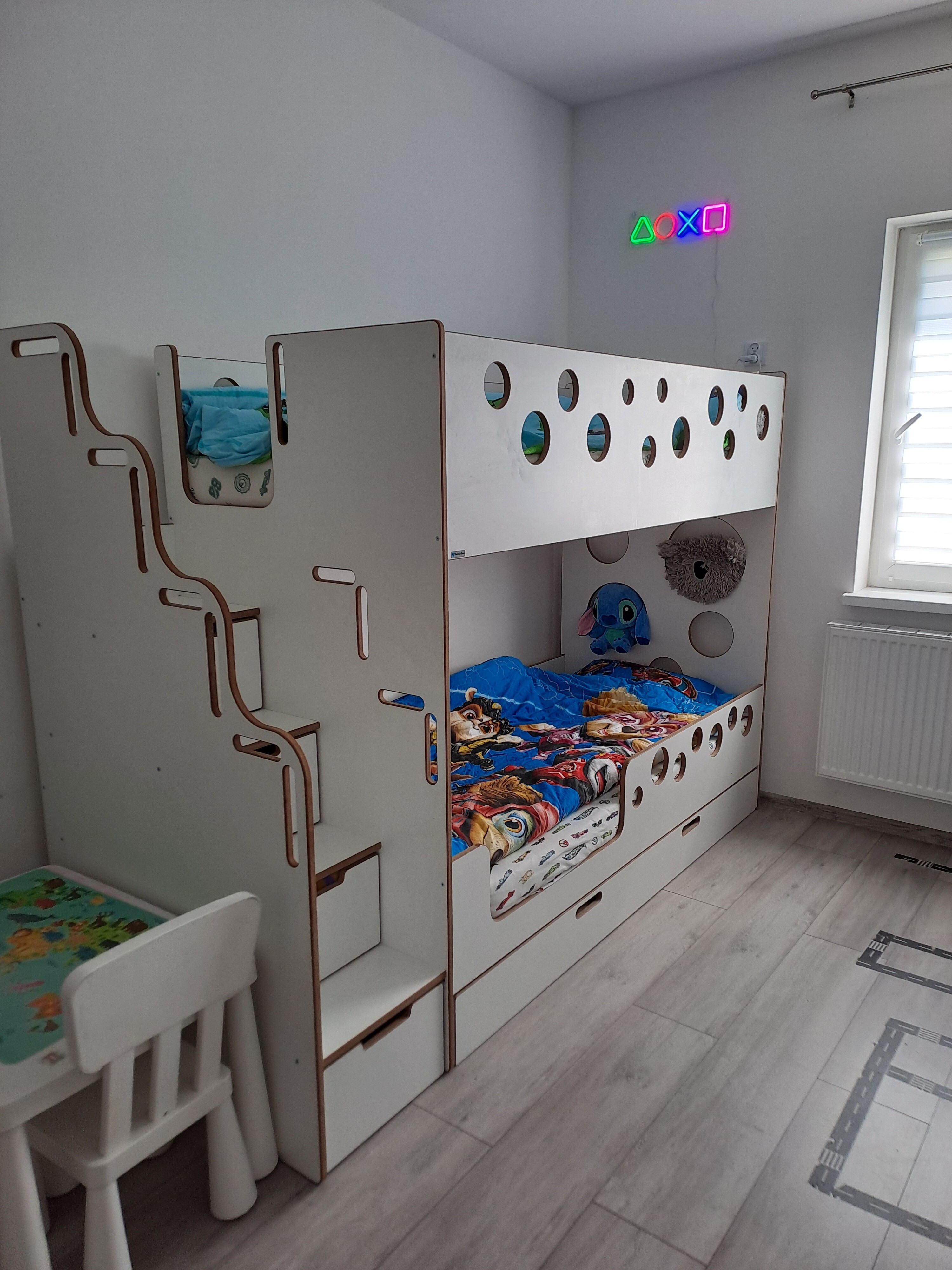 - Wysyłka: czas realizacji zamówienia to 2-4 tygodni od zaksięgowania wpłaty na konto. Łóżko piętrowe wysyłane jest w paczce w formie do samodzielnego montażu. Dostawa odbywa się do pierwszych drzwi wejściowych (kurier nie wnosi mebli do domu)